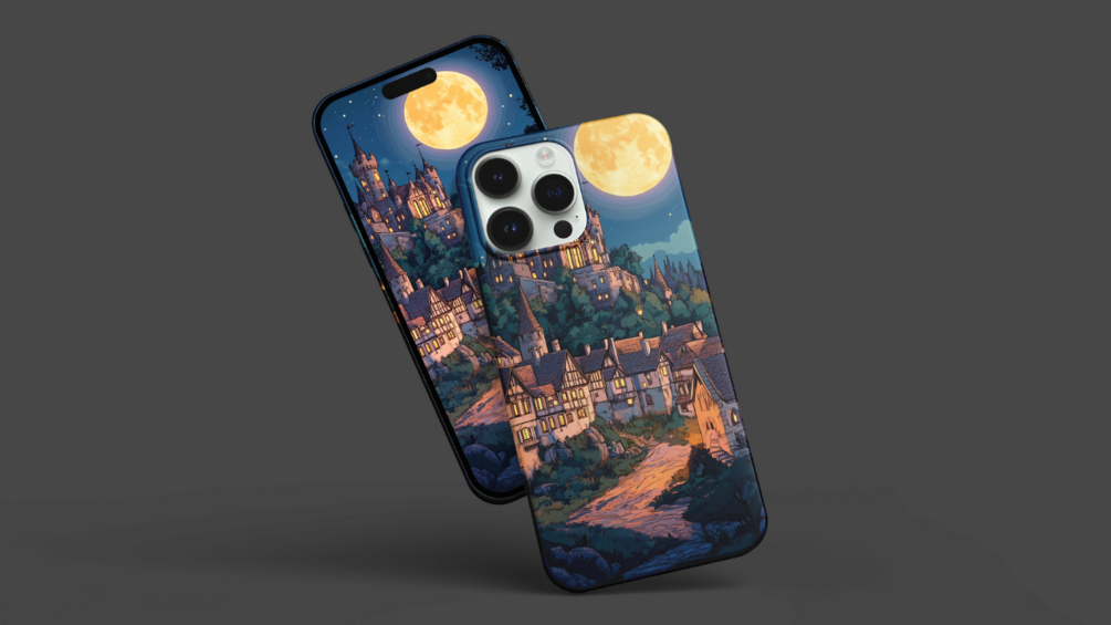 Step into a magical world with "Enchanted Moonlit Village," a breathtaking AI-generated fantasy artwork featuring a medieval village illuminated by a radiant full moon. The glowing castle, charming cottages, and starry night sky create a mystical atmosphere, perfect for fantasy lovers, storytellers, and home décor enthusiasts.