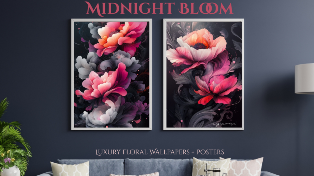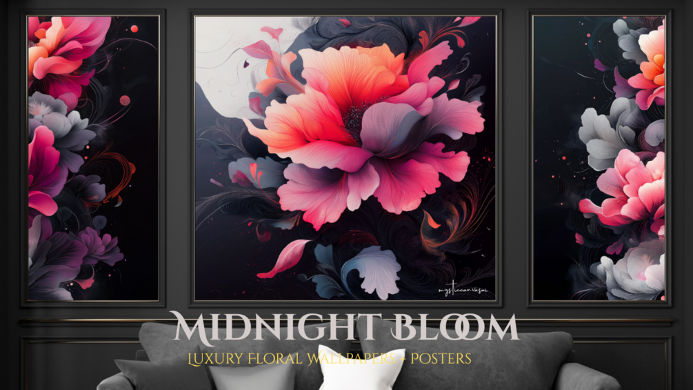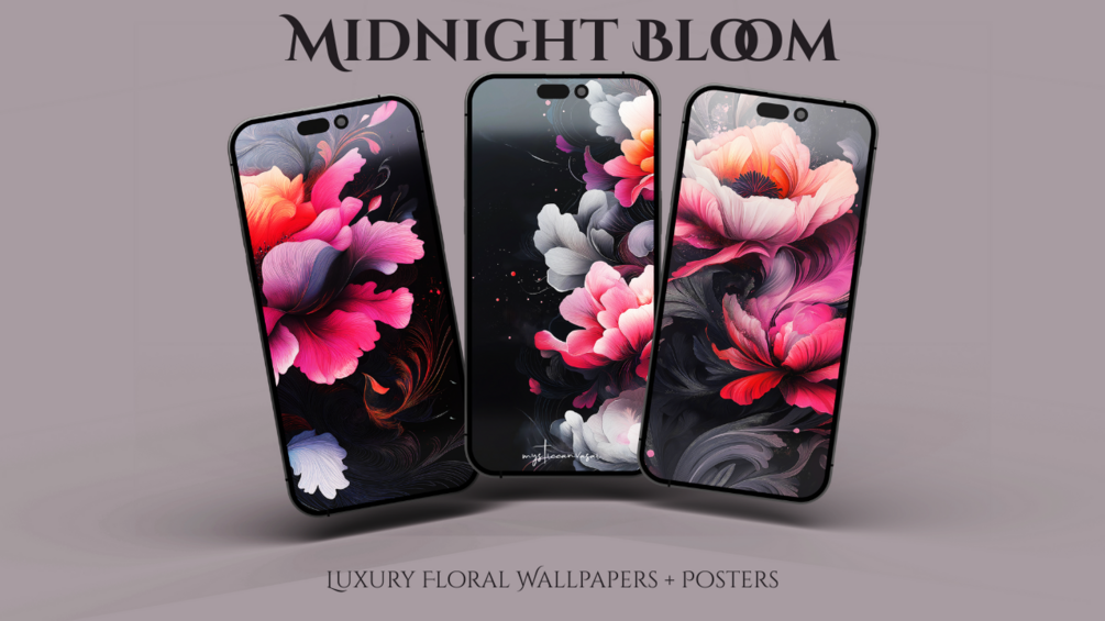 Midnight Bloom – Luxury 3D Floral Art Pack | 5K Wallpapers + Printable Posters